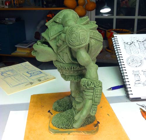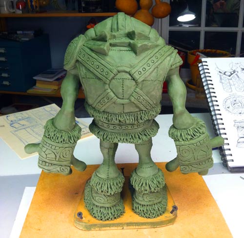 Last Monday my stop-motion teacher suggested I open up the vikings mouth so it could be rigged with wire and then he could talk. That sounded like a good idea, so I did that, and then I put a few finishing touches to my sculpt. I reworked the helmet a bit, added a soul patch to his lip, gave him a snazzy belt buckle and added a little shoulder armor.