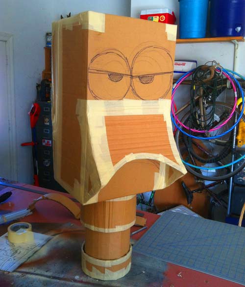 I was sweatin’ bullets at one point because it’s one thing to draw up a quick sketch of an idea, it’s a totally different thing to try to execute it. I ended up building the plug head out of cardboard boxes…