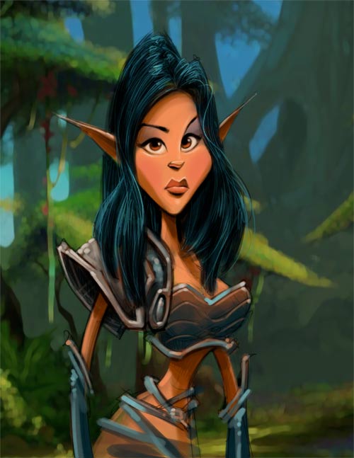 1. I played this game and it was very fun. I really like your rendition of this character and the background is great. It has a feel very similar to the game world. Very nice.
