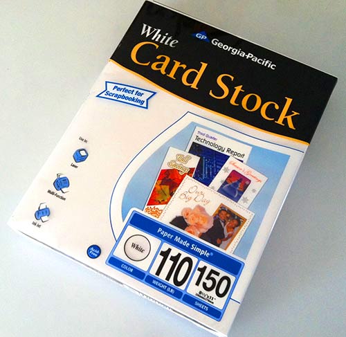 I use a 110lb card stock from Sam’s club. Now I don’t feel so bad!
