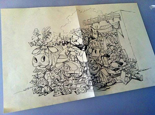 Dennis…. believe it or not I am doing pretty much what you have talked about, finding that 8 1/2 z 11 copier paper works but I thought it was my eyes… gosh.. it’s the size fo thepaper that’s giving me trouble. Sheesh! Unlike you in the following phases i am still painting with gouache and maybe someday I’ll make the leap to photoshop. I have found with the smaller size paper though that I can get it on the back board of my Artograph ( remember those?) that is attached to one of my drawing boards. then at night ( can’t see it during the day) i can copy my initial sketch off to a bigger size and that helps not using the light table to do a 1 for 1. Thanks for always posting these little tidbits… you wouldn’t believe how mush they take the mystery out of “i wonder how other illustrators do their …whatever”
