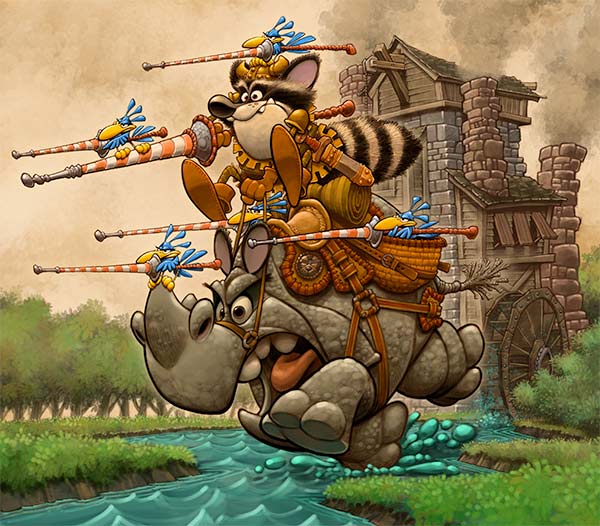 Category: Animals, FantasyTags: animals, birds, concept art, fantasy, raccoon, rhino