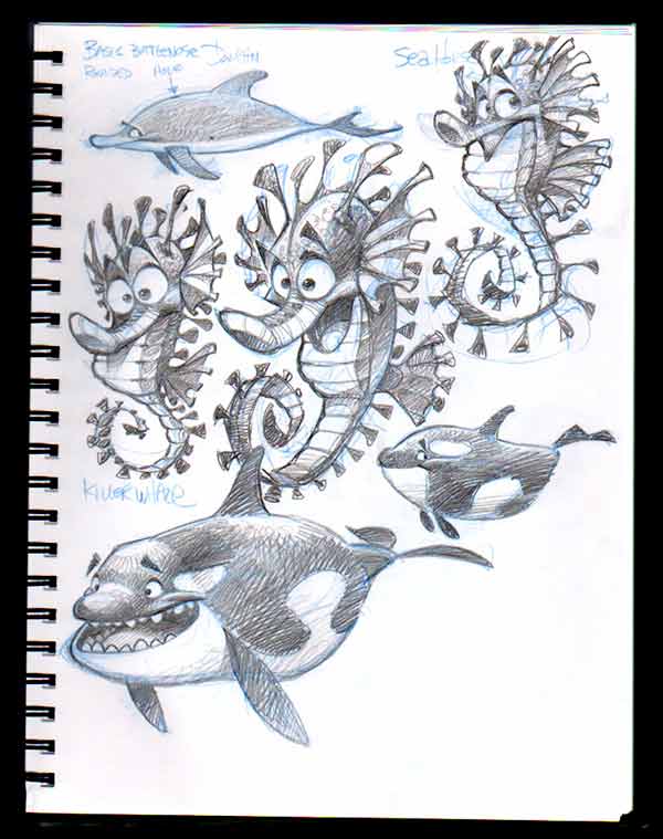 …and another page from my sketchbook. I was trying to figure out a way to inject a little personality into a sea horse.