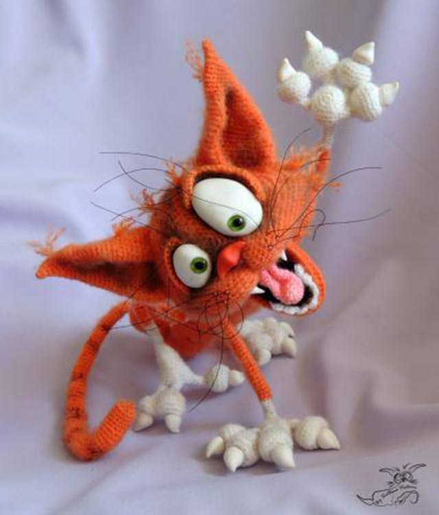 I have a Facebook friend from Russia who makes great little dimensional creatures. Here is one she created that is modeled after my old crazy cat picture. Do yourself a favor, visit her page and enjoy her work for a while.