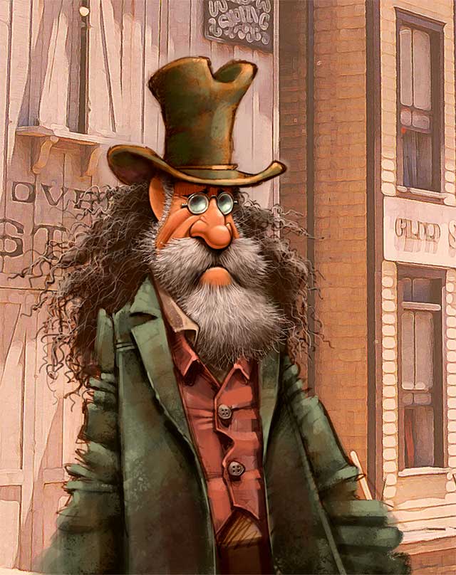 A few weeks ago, I ran across a replay of the Cowboys And Aliens movie on TV. (Spoiler Alert: the movie contains cowboys, indians and ALIENS). In the opening scene, a really interesting looking cowboy with a stove pipe hat rides into the story. Thinking he was a really unique character, I quickly sketched him and later that weekend I scratched some color onto my drawing.