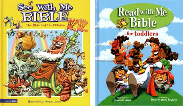In 2005, Zondervan and I created the See With Me Bible. The concept was to tell Bible stories with pictures only, no text, a wordless Bible… a concept that was perhaps a bit too abstract for the time. After a few years, the See With Me Bible was pulled back into the shop, given a tune up, full text and re-released as the Read With Me FOR TODDLERS. I consistently get email from people who have worn that yellow See With Me Bible out and want a new copy of it, but sadly, the See With Me has gone the way of the buffalo.