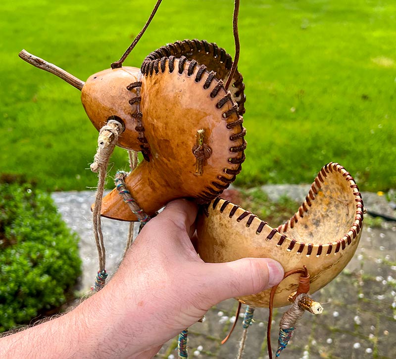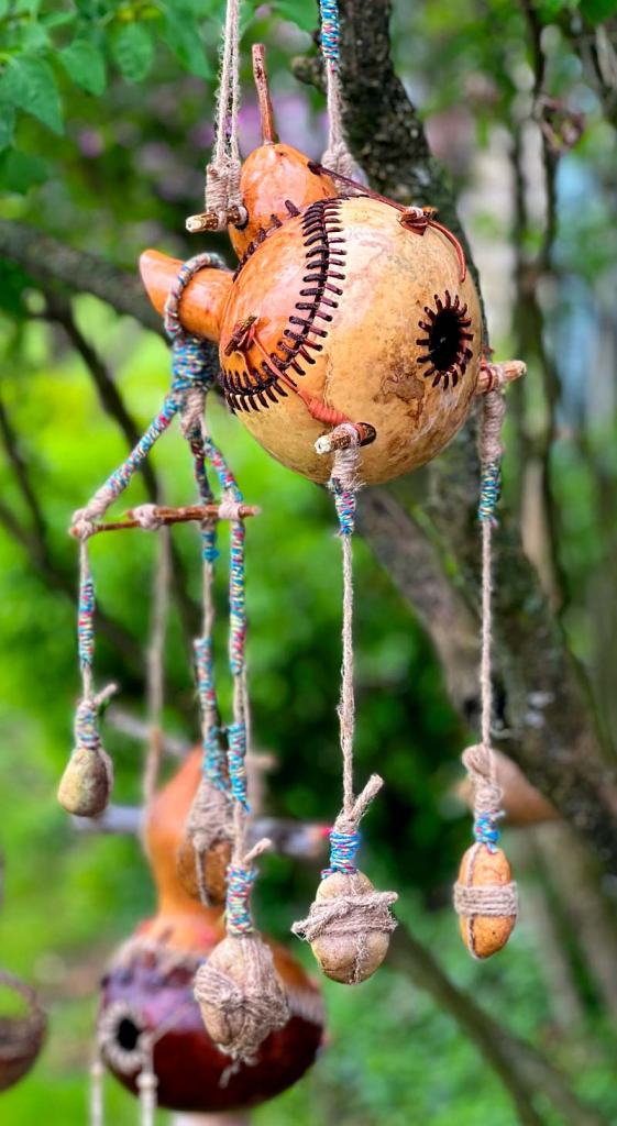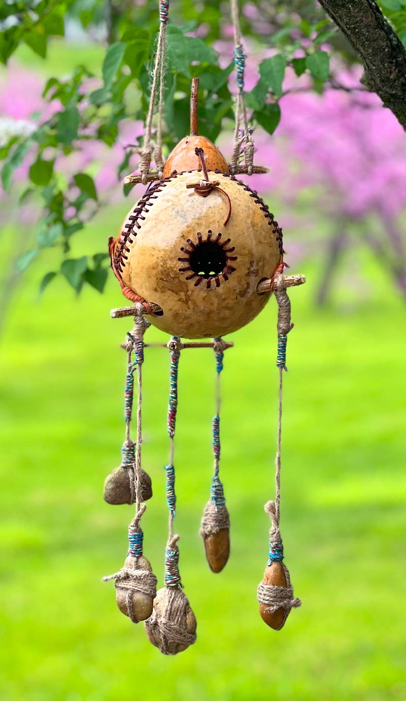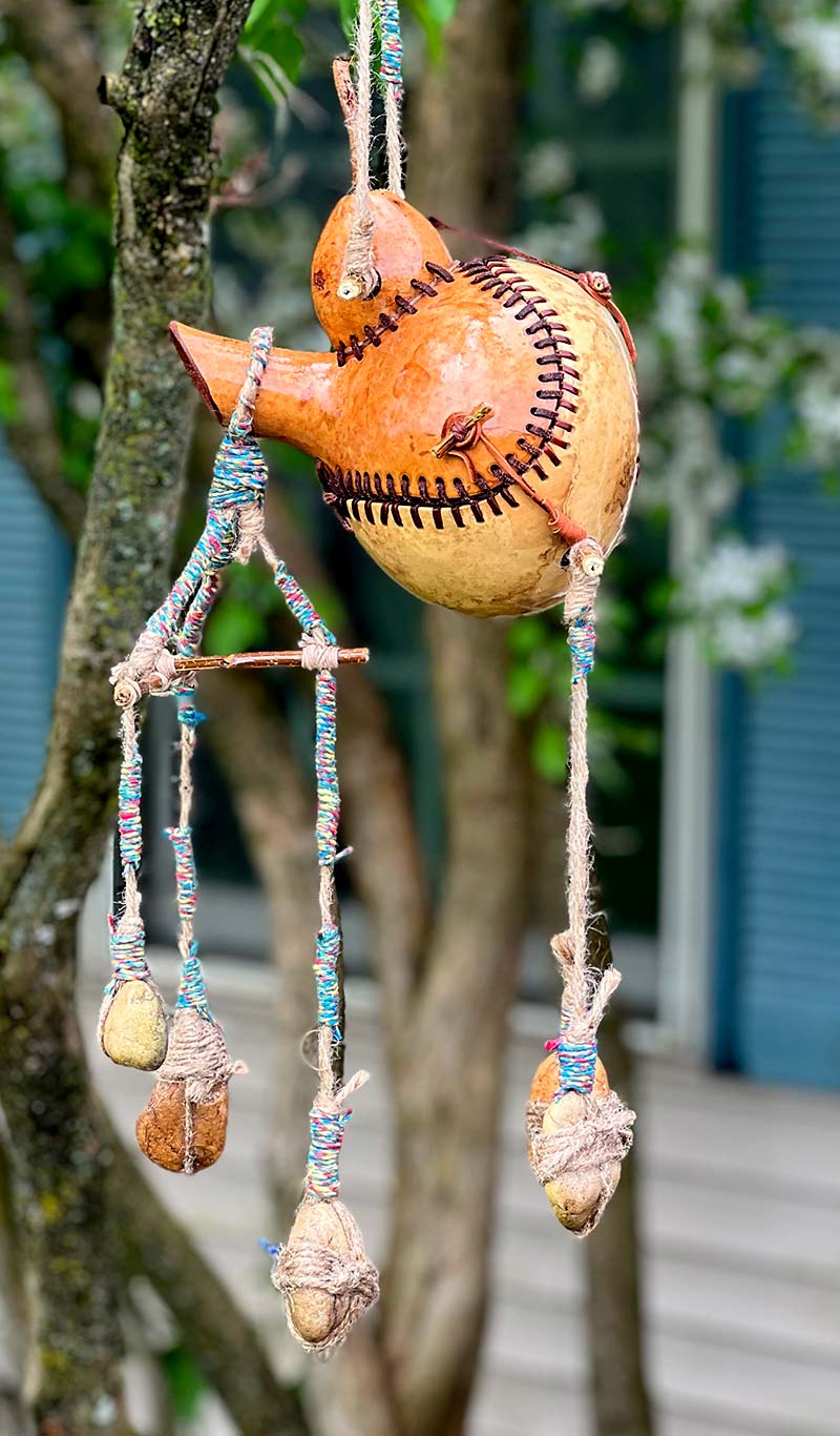 Gourds weigh next to nothing and it’s really windy here in Northeastern Indiana so I add rocks to keep them from blowing out of the trees.