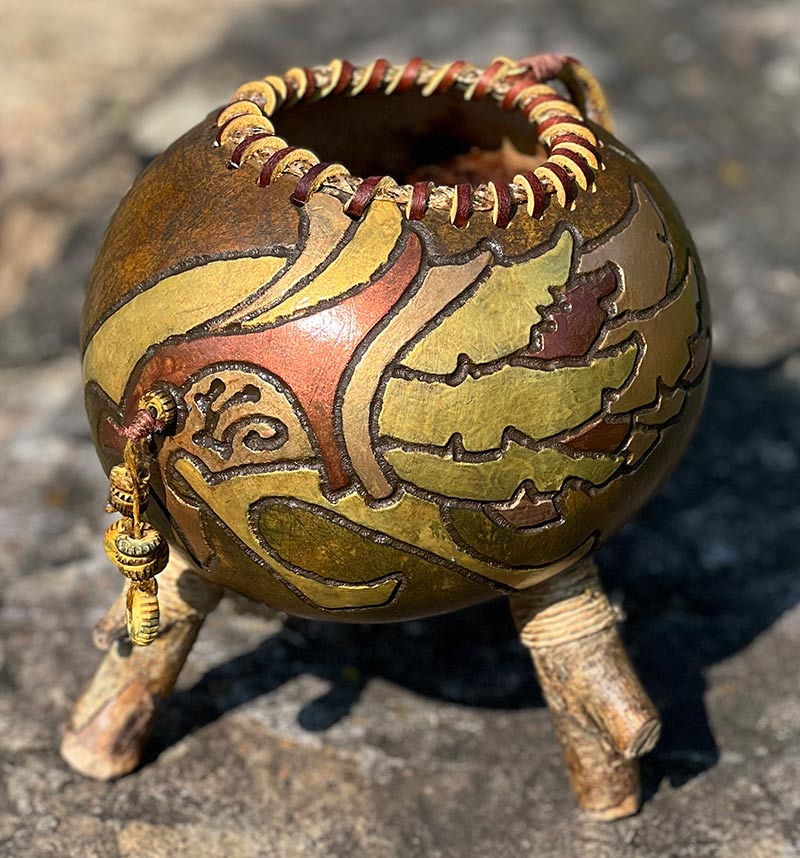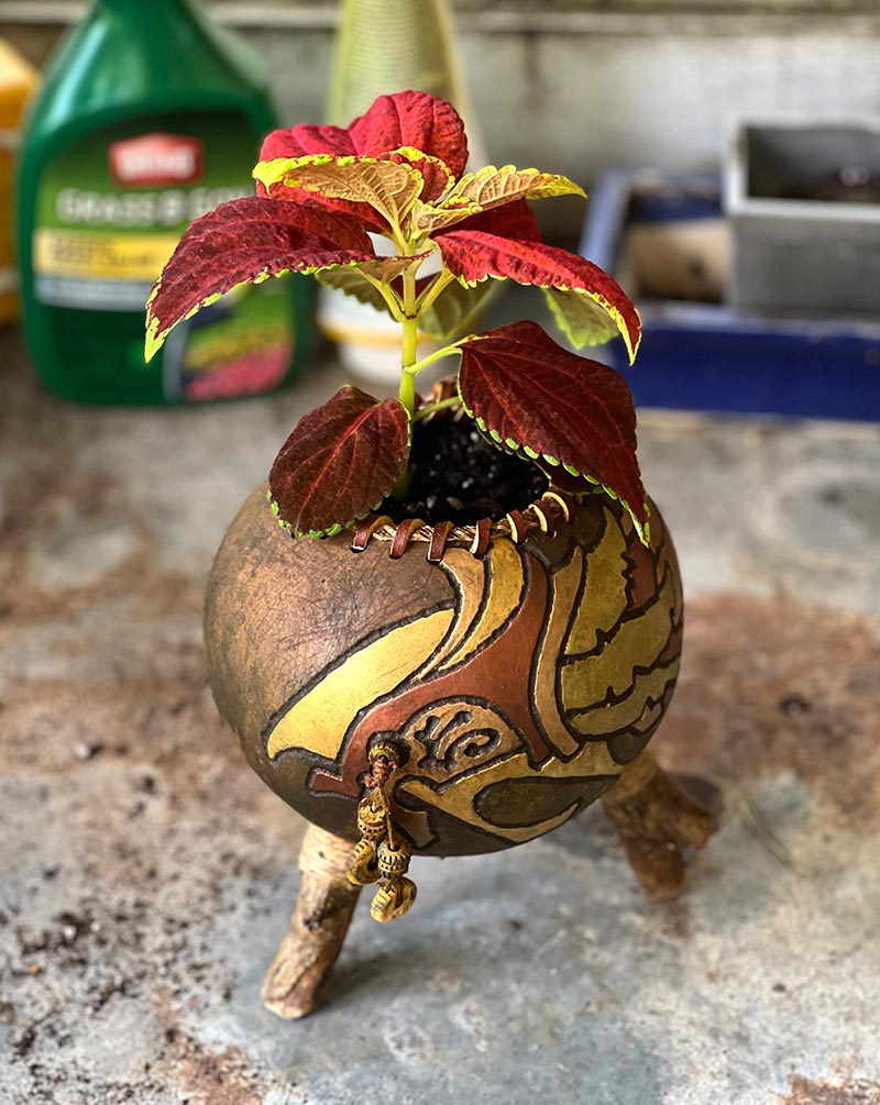 I was digging around on the back porch and found this old gourd with a hole in it hidden away on the bottom shelf of a cabinet. I turned it over and found an interesting design I had apparently carved into it at some point in time.