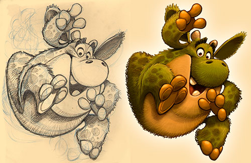 Color can be a tricky thing to work with. Lots of out of control color can confuse what you are trying to achieve in an illustration. This is a simple technique to keep order when you have a lot going on in a picture. Render the background in a monotone and only use color on what you want the viewer to focus in on. It pretty much works every time.