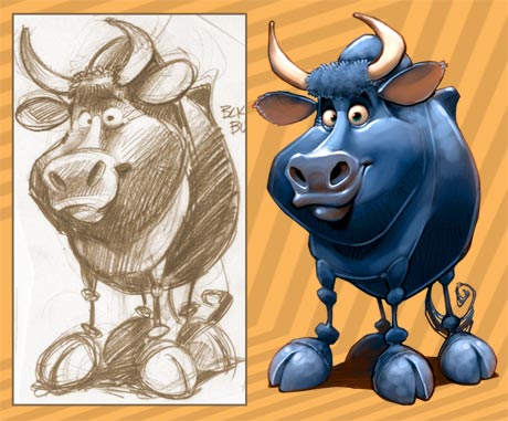 Sometimes I get a job and I have absolutely no idea what it is for or how it is to be used. This was one like they. My art direction called for two cartoony cows taking bows, one in a tux and top hat and the other in a tutu and please, no personal parts showing. I’m still not sure in what context this is to be used, but it did remind me of one of my favorite cow jokes…