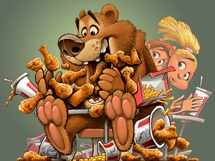 After a couple of buckets of fried chicken and no napkins, the grizzly bear officially turned into a greasely bear.